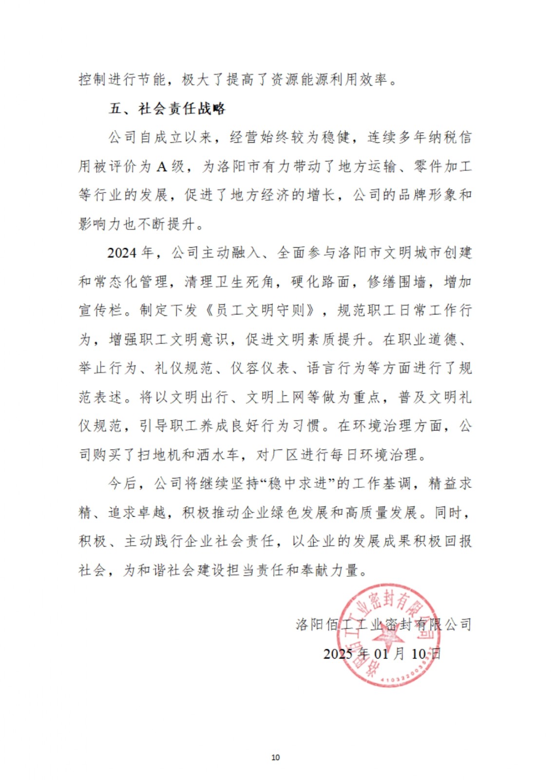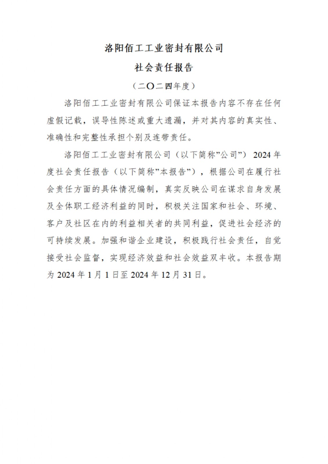 洛陽佰工工業(yè)密封有限公司社會責任報告-2024